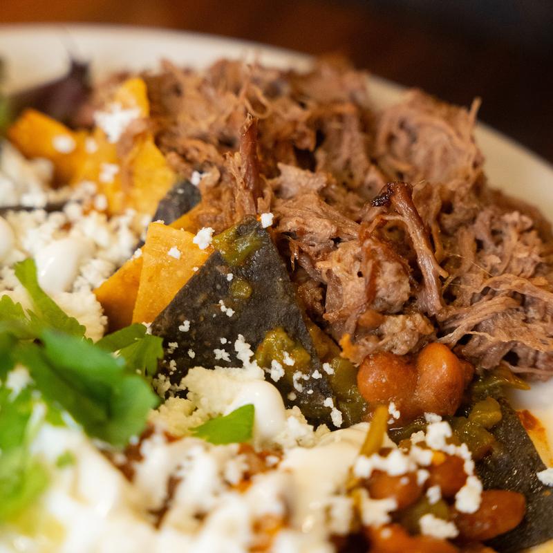 Crispy tortilla chips in Frank Sr.’s red or green chile, topped with an egg, queso fresco, crema, and a touch of pinto beans. Upgrade with carne adovada, brisket, grilled chicken, or steak for $3.95.
