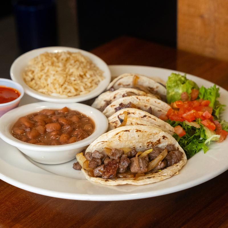 Two eggs, hash browns, and ribeye steak grilled with jalapeño and onions. Served with tortilla.