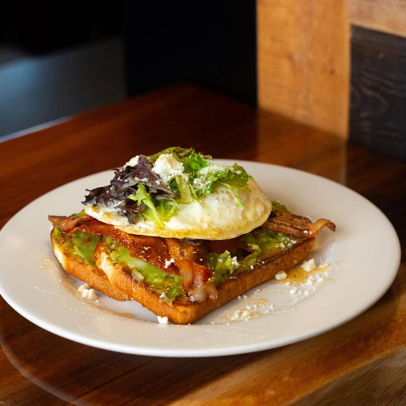 Toasted sourdough with a spread of Frank Sr.’s green chile, topped with creamy guacamole, queso fresco, and a farm-fresh egg any style. Finished with a drizzle of honey. Upgrade with bacon, sausage, or ham for extra flavor.